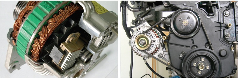 교류발전기의 역할 교류발전기는 자동차에서 발생하는 기계적 에너지를 전기에너지로 변환하는 장치입니다. 차량의 엔진이 작동하면 벨트 시스템을 통해 교류 발전기가 구동되고, 생성된 전기는 차량의 배터리와 전기 시스템에 공급됩니다. 배터리는 차량 시동에 필요한 전력을 공급하고, 교류발전기는 차량이 운행되는 동안 배터리를 충전하는 역할을 합니다.